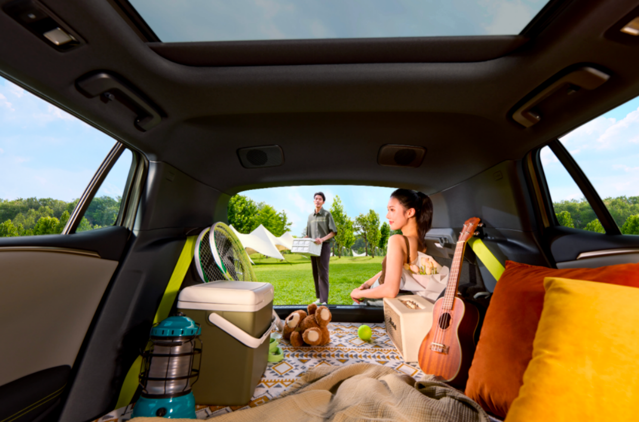 內(nèi)飾采用全新「森野熒光」風(fēng)格,以灰白為主色調(diào),搭配熒光綠元素,配備智能調(diào)節(jié)的流光環(huán)繞氛圍燈。車內(nèi)設(shè)計36處儲物空間,包括8L手套箱隱藏式掛鉤、9.4L中央扶手箱,后備箱可從353L擴(kuò)容至1126L,滿足運(yùn)動、露營等場景儲物需求。