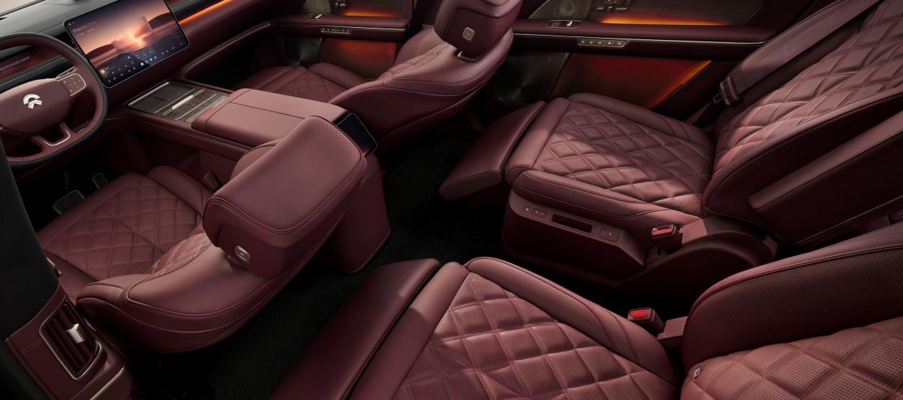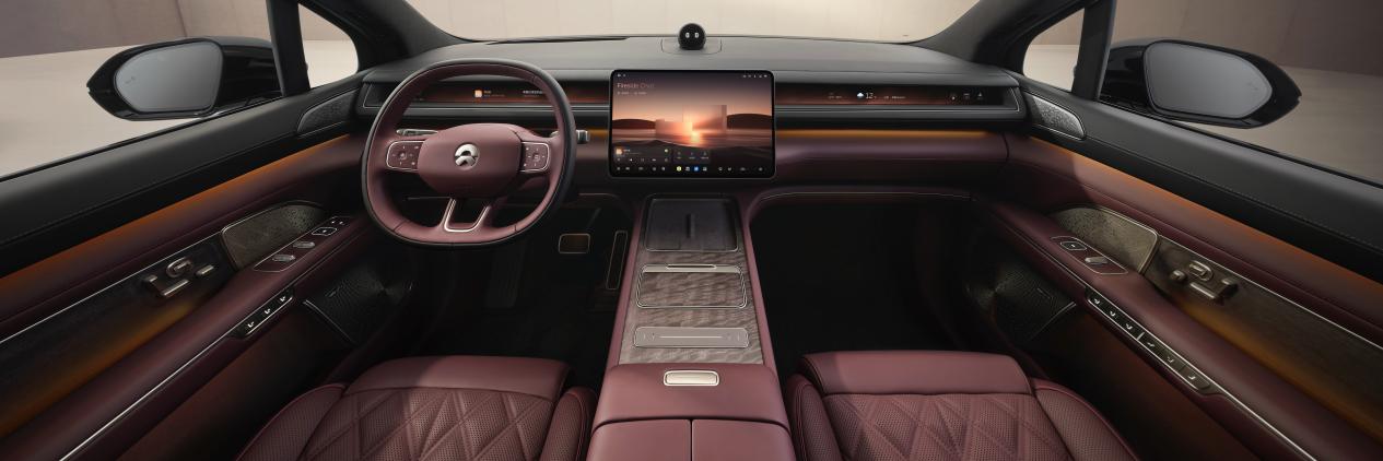 極具匠心的材質選擇,凸顯全新 ES8 豪華細節質感。同級最大 52 平米軟包覆面積,實現主接觸面 100%覆蓋; 座椅采用 Nappa 真皮與雙線菱格紋結合,觸感細膩;「寰宇星軌」金屬拉絲音響罩蓋、 27.5 米的緞光飾條、臻選云影真木等配置讓座艙充滿高定般豪華質感。帕米爾棕、珍珠貝、黛山藍、蘇木紅四大內飾主題顏色精心匹配不同材質,營造更高級的座艙氛圍。