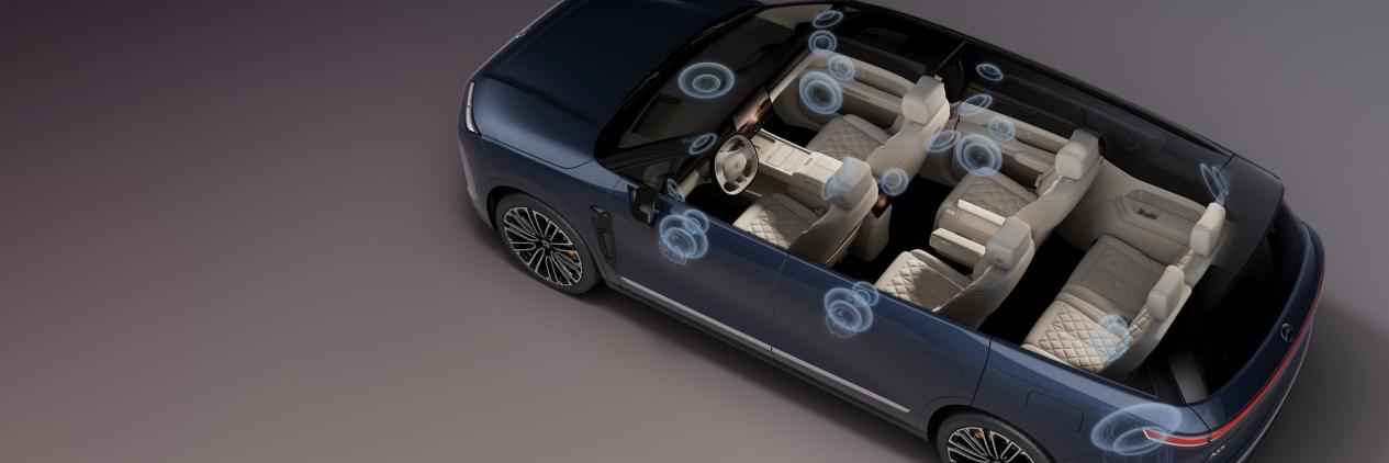 全新 ES8 引領極致座艙視聽體驗。蔚來天琴 8.1.4.2 沉浸聲系統擁有 27 個揚聲器和 2,600W 額定功率支持杜比全景聲,遠超行業頂級音響水準。行業首創「天空中置」揚聲器實現精準音畫同源,全球首發 Dirac RRM「超境臨場」技術打造殿堂級視聽空間。