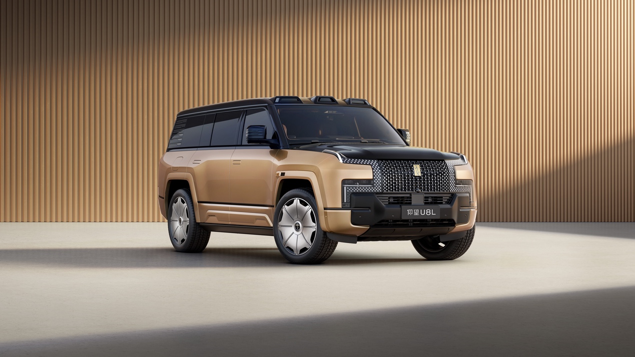 整車方面,仰望U8L鼎世版以“鼎”為設計靈感,融合東方美學與未來科技,打造出氣場全開的行政級豪華SUV。曜石黑配日曜金、曜石黑配日珥金兩款黑金配色車漆搭配甲骨文黃金車標、23英寸的八孔鍛造輪轂等細節設計,盡顯獨特身份與氣質。5400/2049/1921mm的車身尺寸,3250mm的軸距,均為同級主流車型之最。