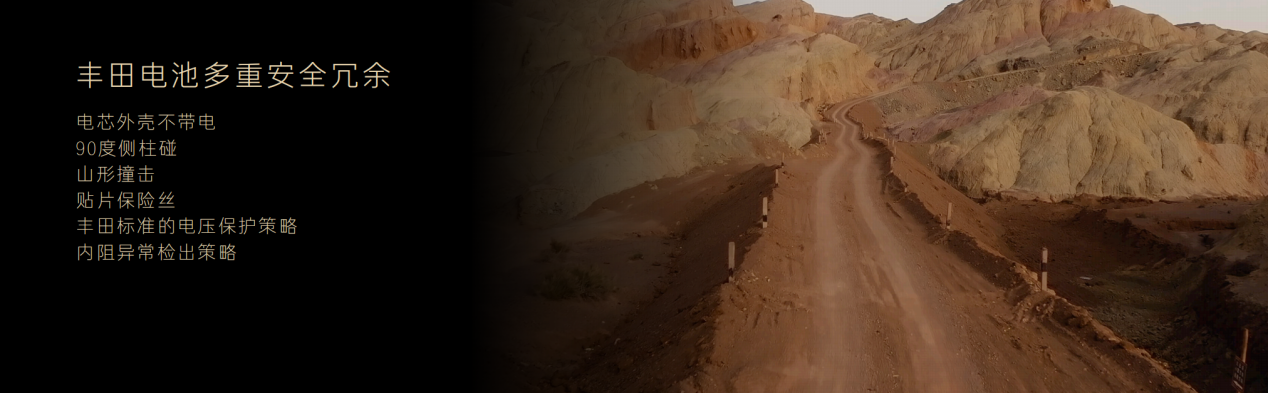 其中,車內車外門把手均配備雙重解鎖機制,將所有門把手機械+電動二合一,使門把手具備安全冗余設計,極端情況下斷電依舊可以利用機械方式打開。車身采用碰撞安全冗余設計,做到行業唯一90°側柱碰后電池0侵入0起火,豐田還首創超國標“山形碰撞測試”用于驗證電池底部碰撞安全。電芯四重防護、電池四層防熱擴散、電池上蓋特殊設計和廣豐反向駐場育成電池供應商,這些均是針對電池殼體和電芯安全的冗余設計與做法。