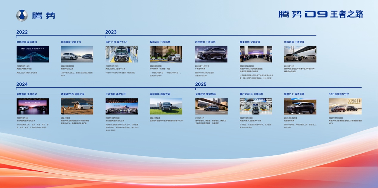 從0到30萬,是騰勢D9的成長軌跡;從中國冠軍到全球冠軍,是中國汽車工業的崛起縮影。作為全球首款達成第30萬輛交付的新能源MPV,騰勢D9如今在更高的起點上持續突破。隨著產品力的不斷進化,騰勢D9必將贏得更多全球精英的青睞。而中國豪華汽車的故事,也將因騰勢D9這樣的標桿,在世界舞臺上寫下更璀璨的篇章。